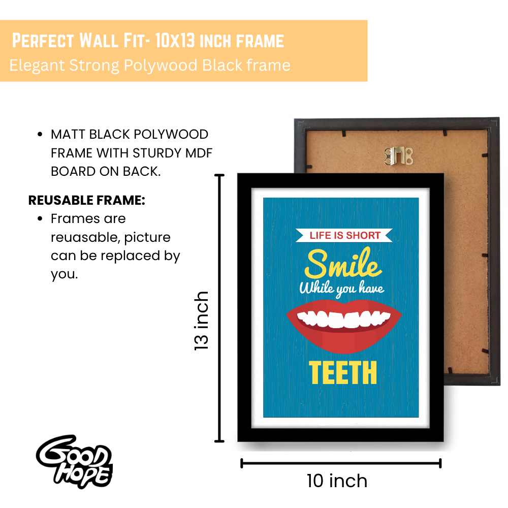 Dentist Funny Quote Wall Frames for Dental Clinic, Photo Frame for Hospital, With Hanging Hook Brush Framed poster Pictures for Wall Decoration