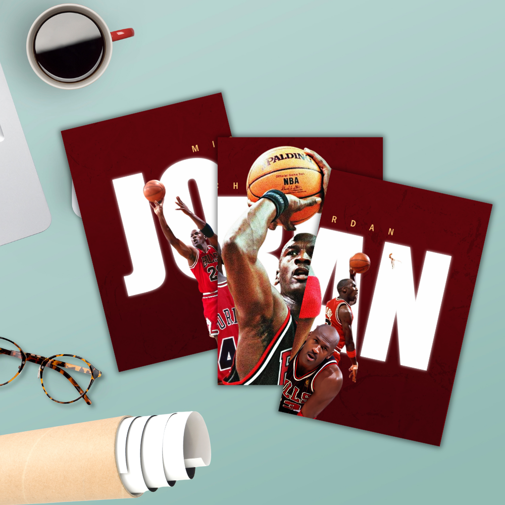 Basketball Player Michael Jordan 3 Split Poster Basketball Legend Wall Art for Room, Gym & Office Decor Hostel Sports Room Gift For Fan Boys Men Wallpaper Stickers
