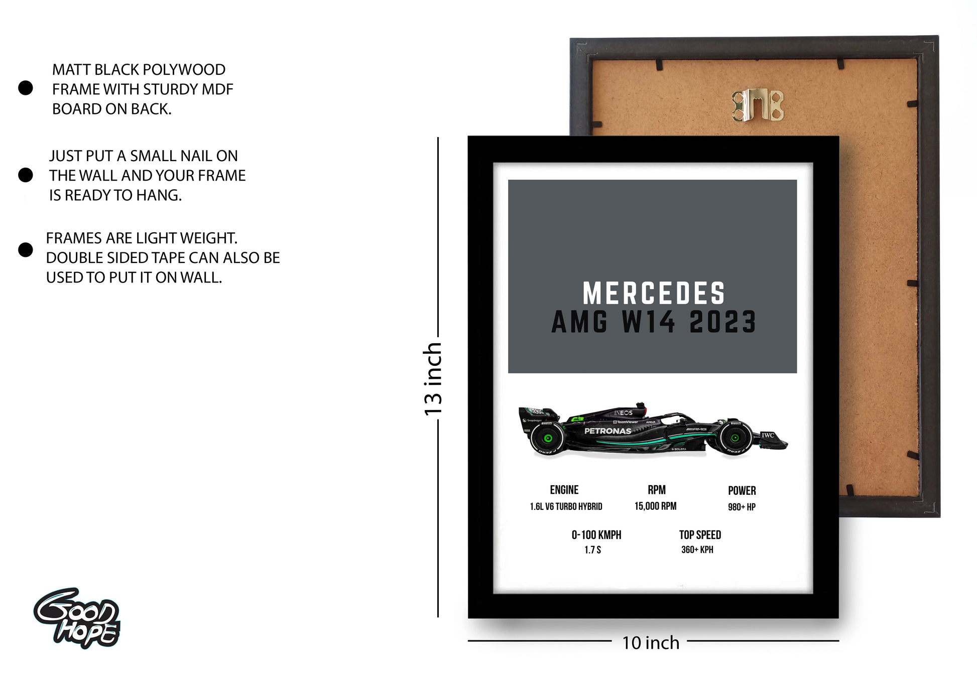 - Frame- Elegant black Polywood Frame with one inch white border