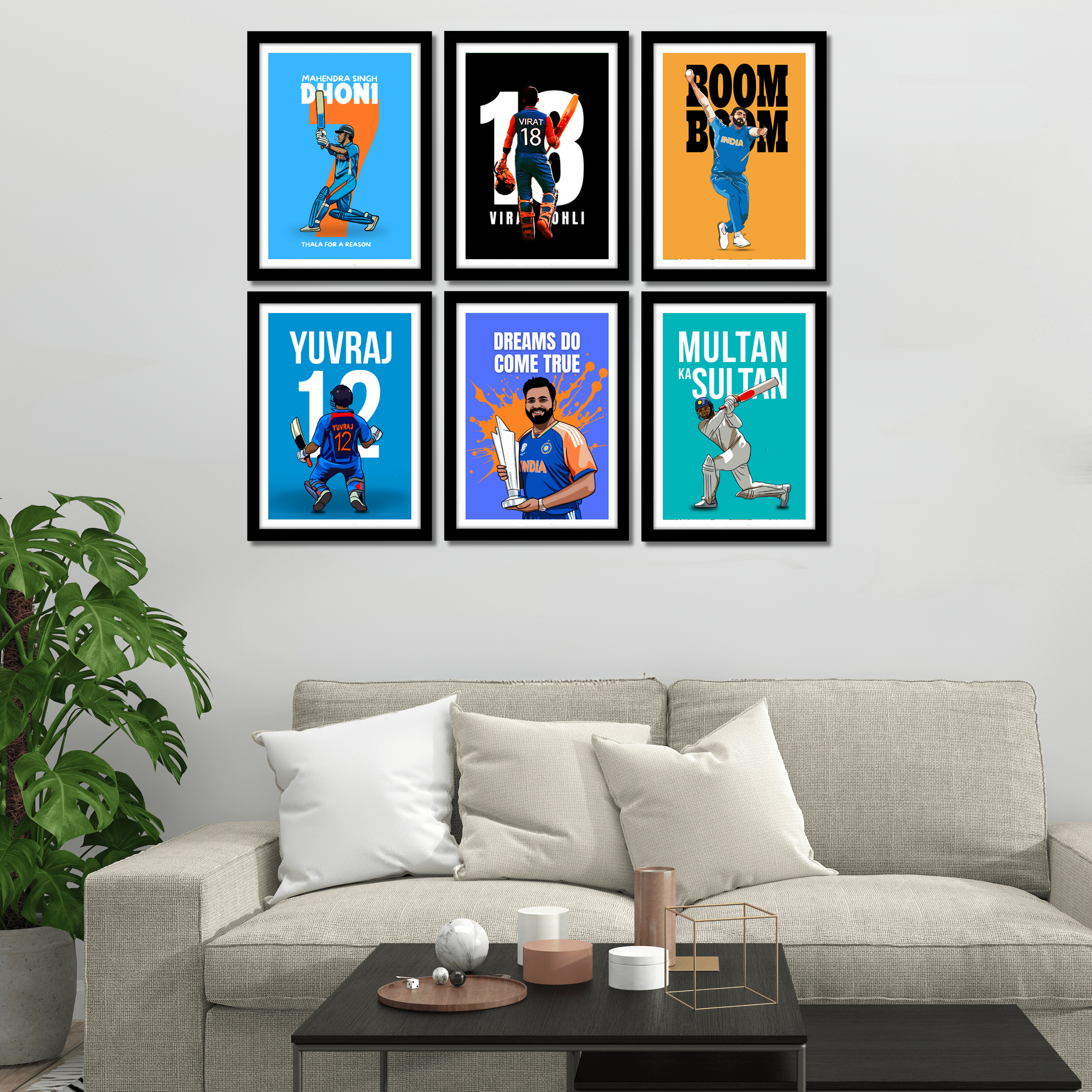 Cricket Legend'S (Set Of 6) Cricketer Virat Kohli Poster Cricket Players Motivational Player King Kohli posters with frame or without frame For wall decor, room decoration home bedroom living room Paintings Hostel Boys Ideal For Cricket Fans