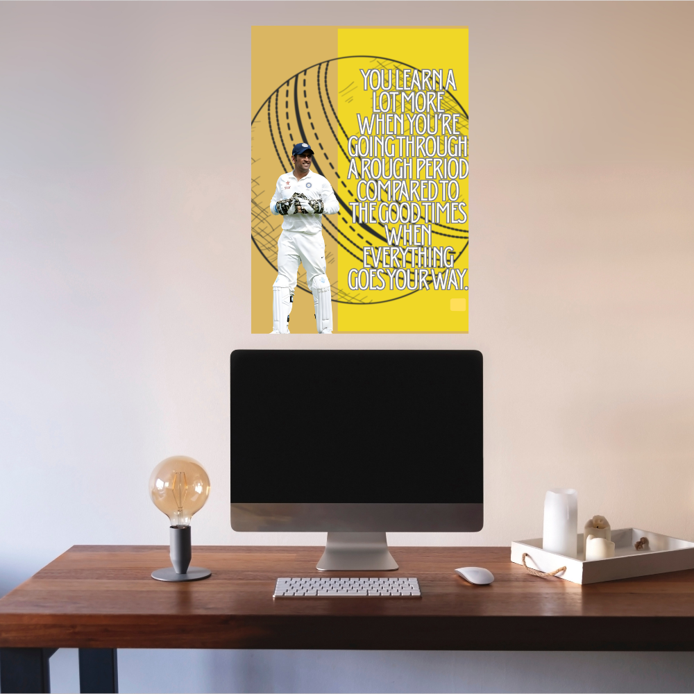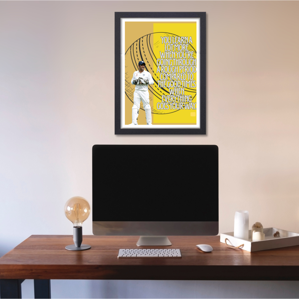 MS Dhoni Posters Mahi Wall Poster With Mahendra Singh Dhoni Motivational Quotes | For Room Wall Decoration, Living Room Bedroom Boys Gift Fan| Cricket Lover Cricketers Wall Decor Painting with framed without frame framed