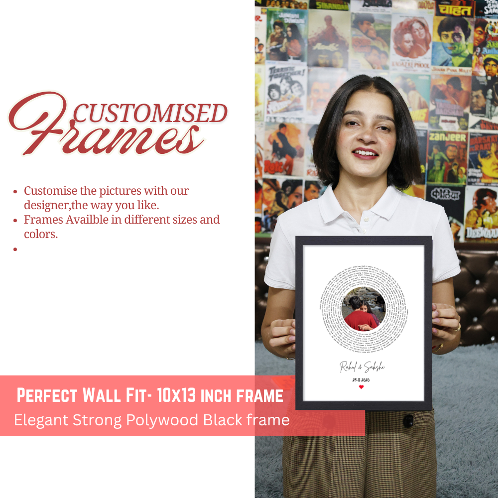 Customized Photo Frame with Circular Text Design | Personalized Couple Gift | 10x13 Inch Wall Decor Frame for Anniversary, Wedding or Valentine's Day
