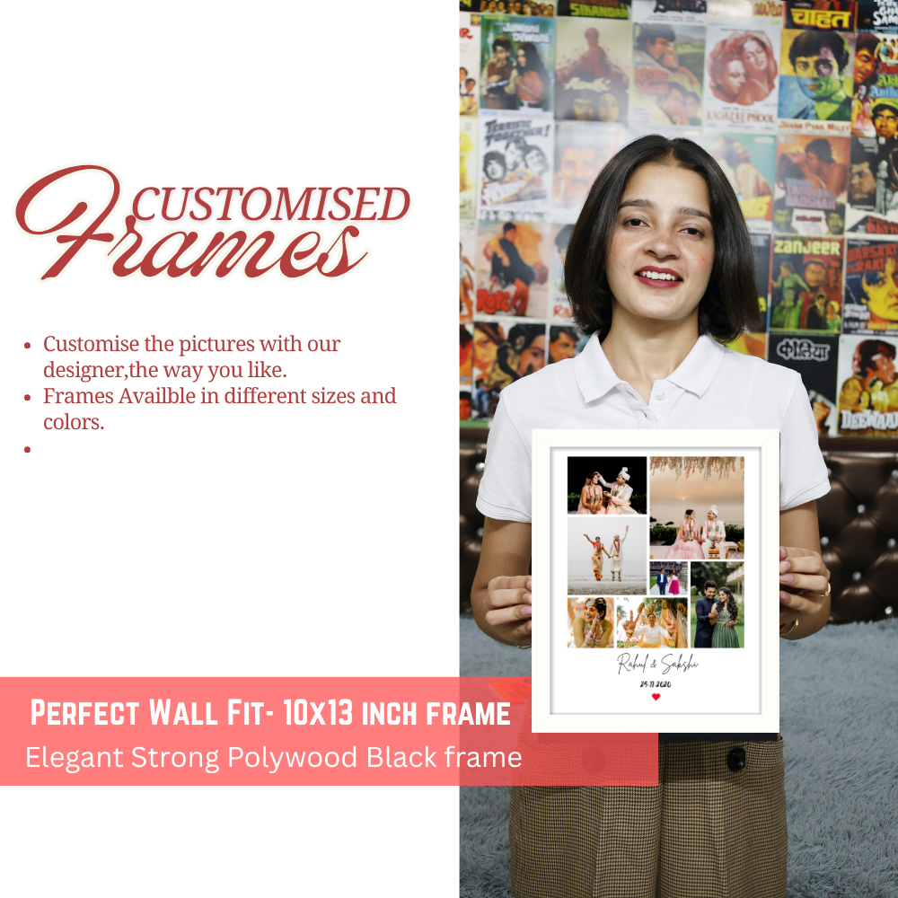Customized Photo Collage Frame – 8 Photo Grid with Name & Date | White Frame Wall Decor
