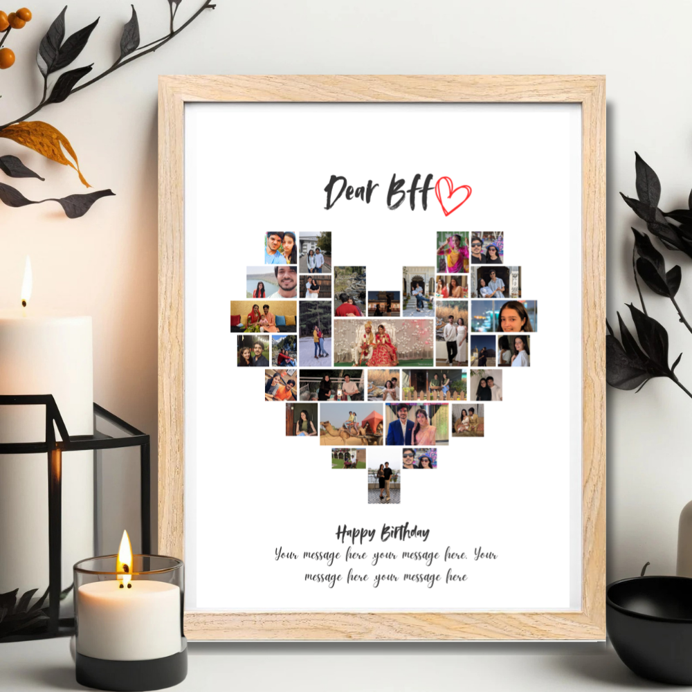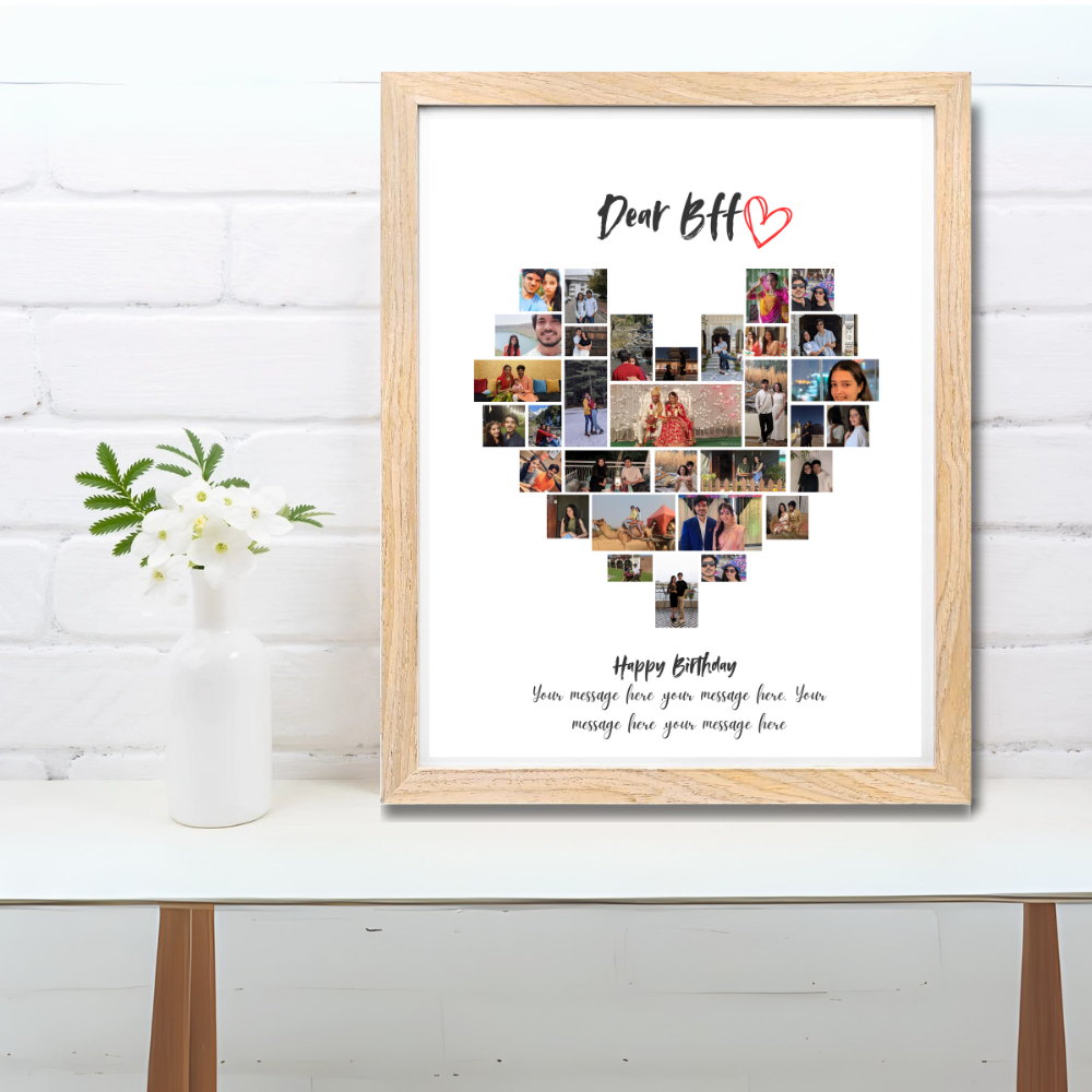 Personalized Wooden Frame Wall Art Custom Birthday Gift for Best Friend with Message & Photos