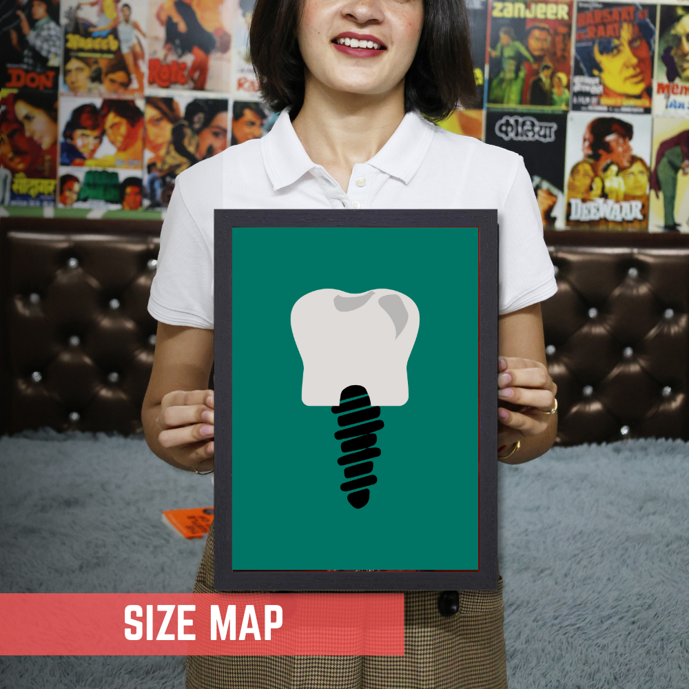 Dentist Funny Quote Wall Frames for Dental Clini, Photo Frame for Hospital With Hanging Hook | Brush Framed oster Pictures for Wall Decoration Dental Implant Illustration Wall Art – Modern Tooth with Screw Design in Black Frame