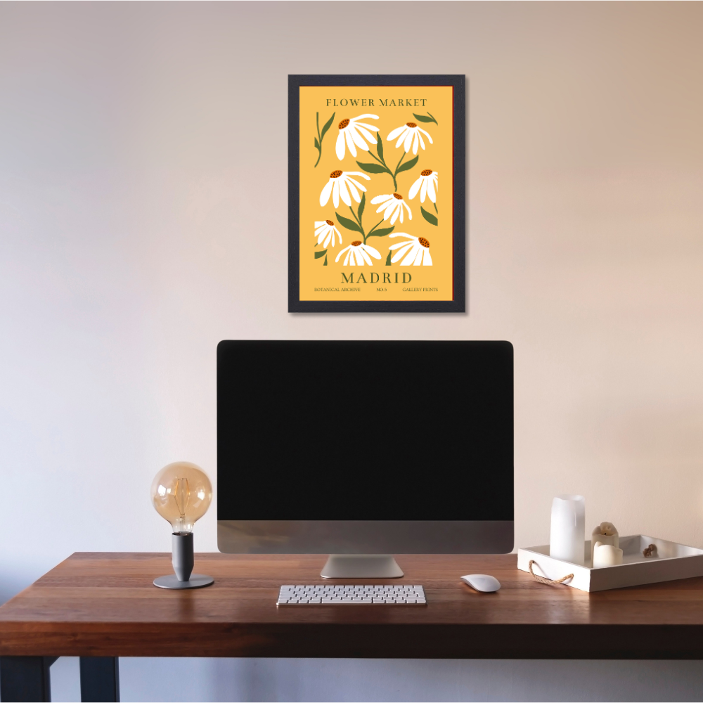 Flowers Frames for wall decoration, Flowers Photo Frames, boho wall frame aesthetic, framed Poster, Flower Photo Frames for Living , wall decor, room decor, office, Flower Market Wall Art – Boho Botanical Print in Black Frame