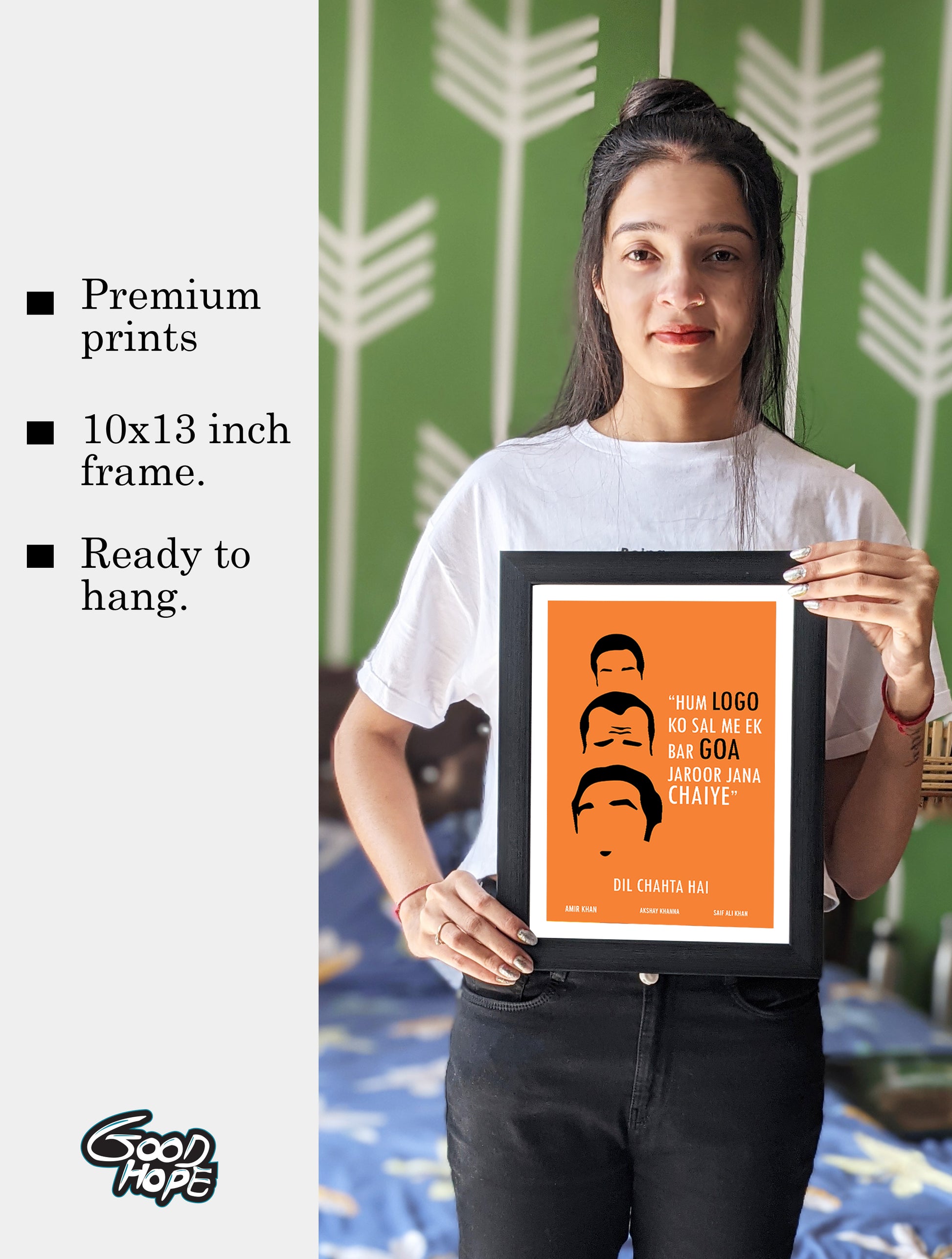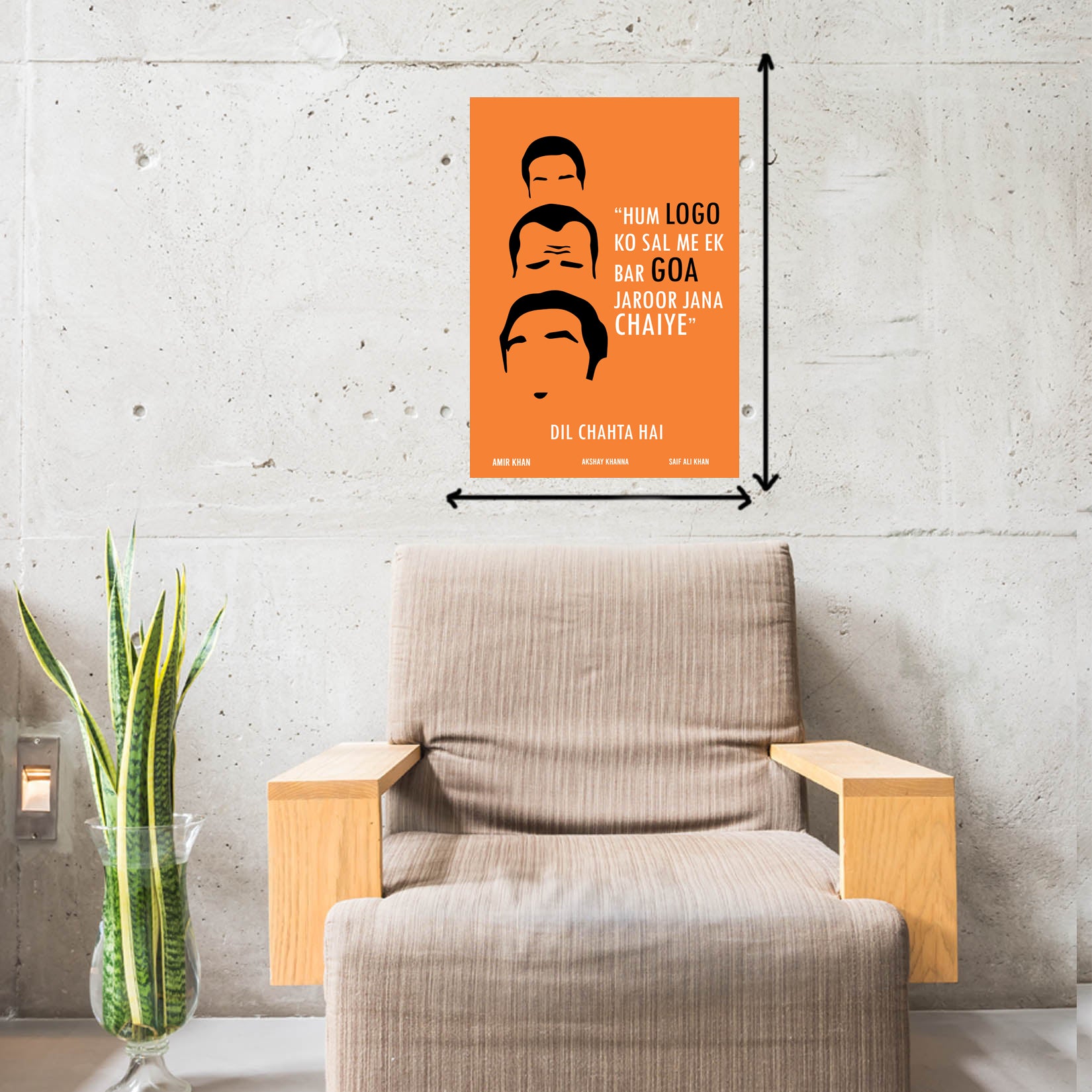 Dil Chahta Hai Movie Poster, Amir Khan Movies Available with Different frames With customized sizes. Framed Canvas and rolled canvas for your walls are available.