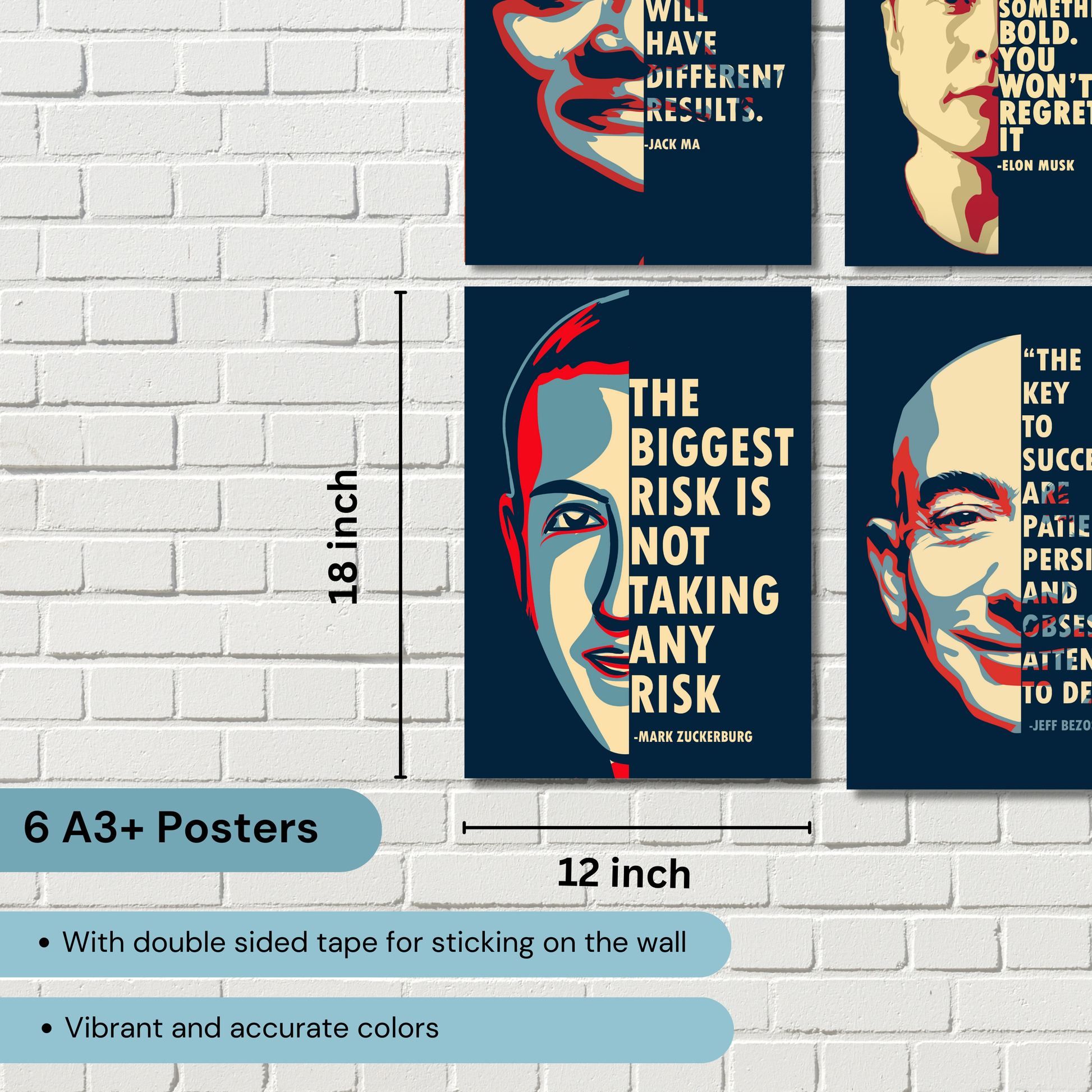 Billionaire Legend's (Set Of 6) Motivational Quote Artwork