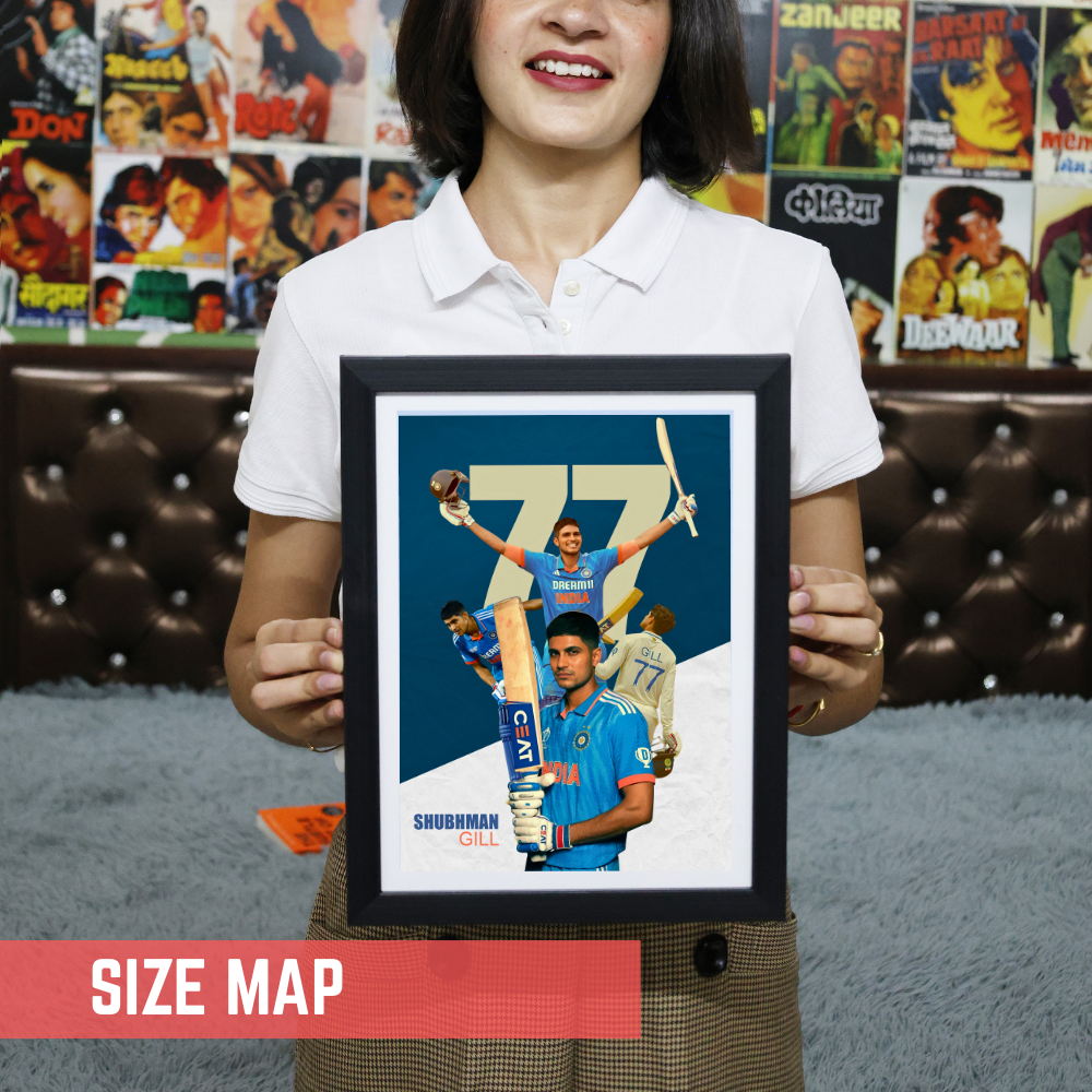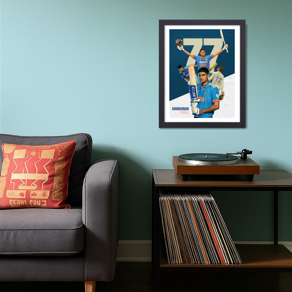 Shubhman Gill Fram Shubhman Gill Poster, Indian Cricketers Photo Frame, Motivational Quote Framed poster inspiration, sports room decoration,
