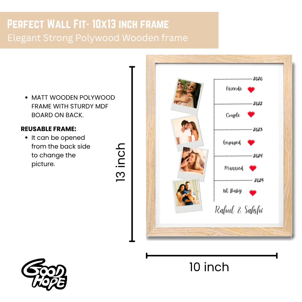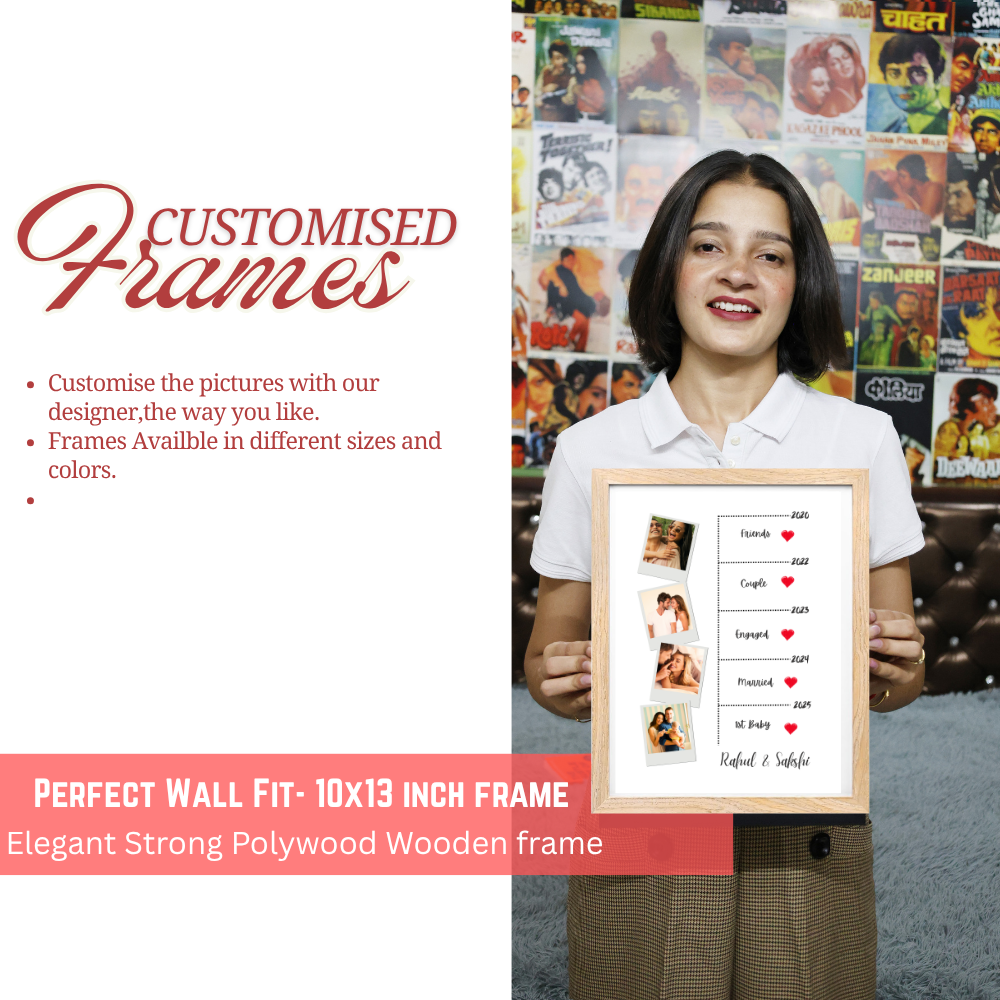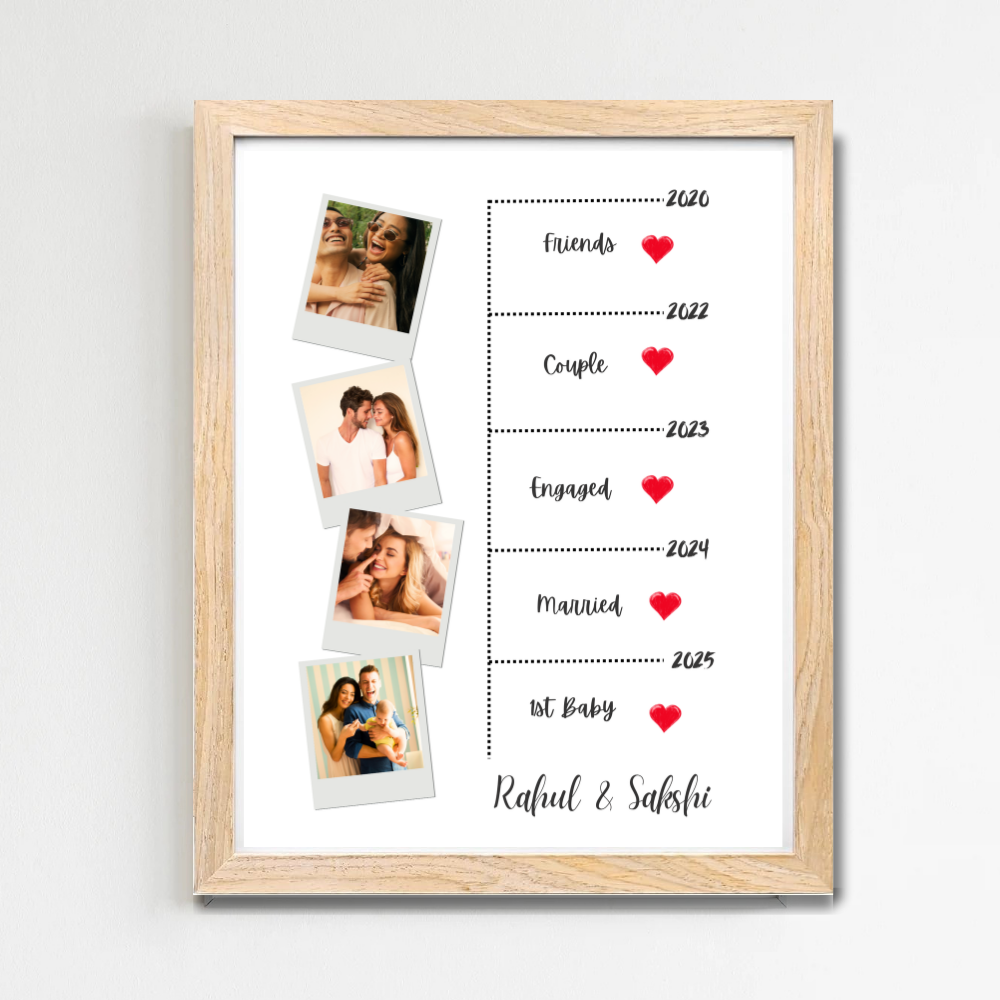 Custom Relationship Timeline Photo Frame – Wooden Frame Couple Milestone Gift Add Names, Years & Photos