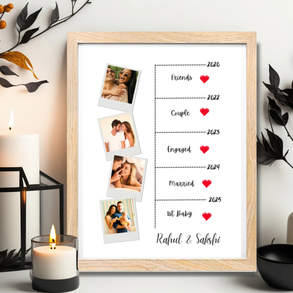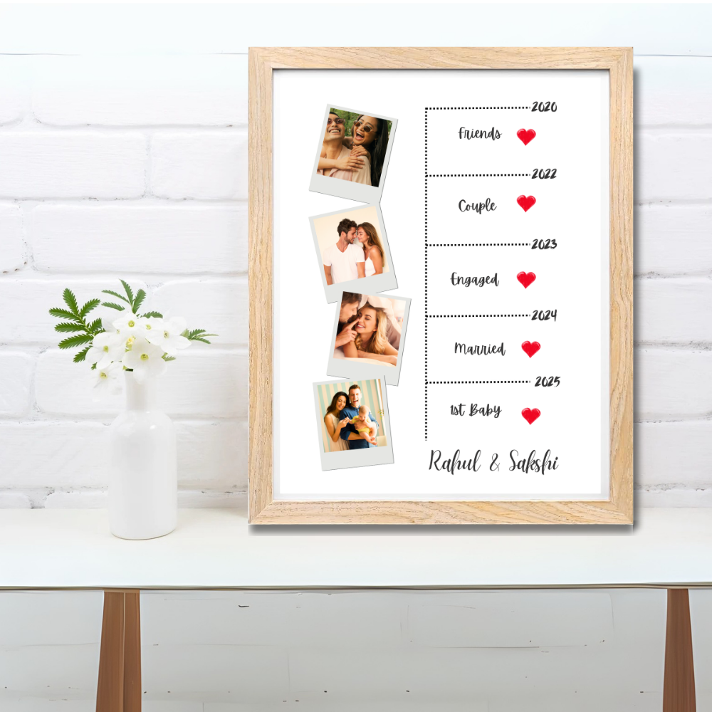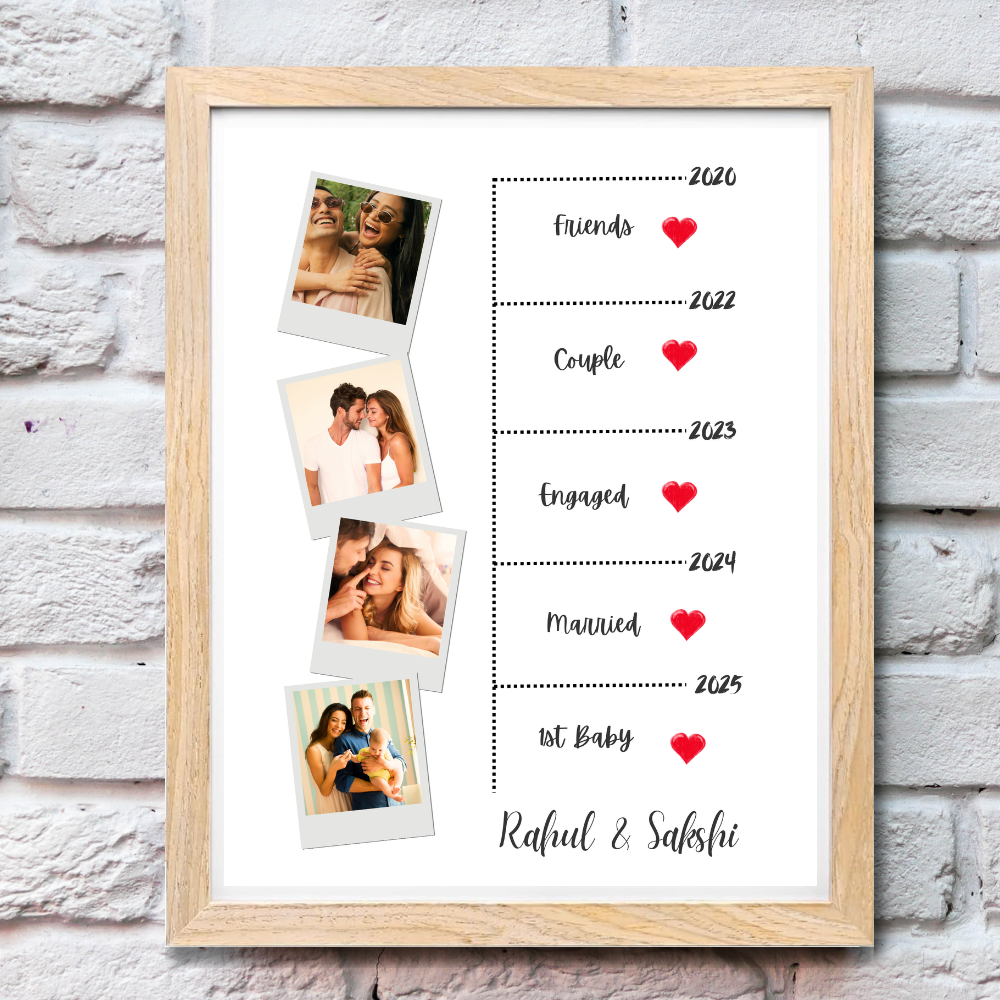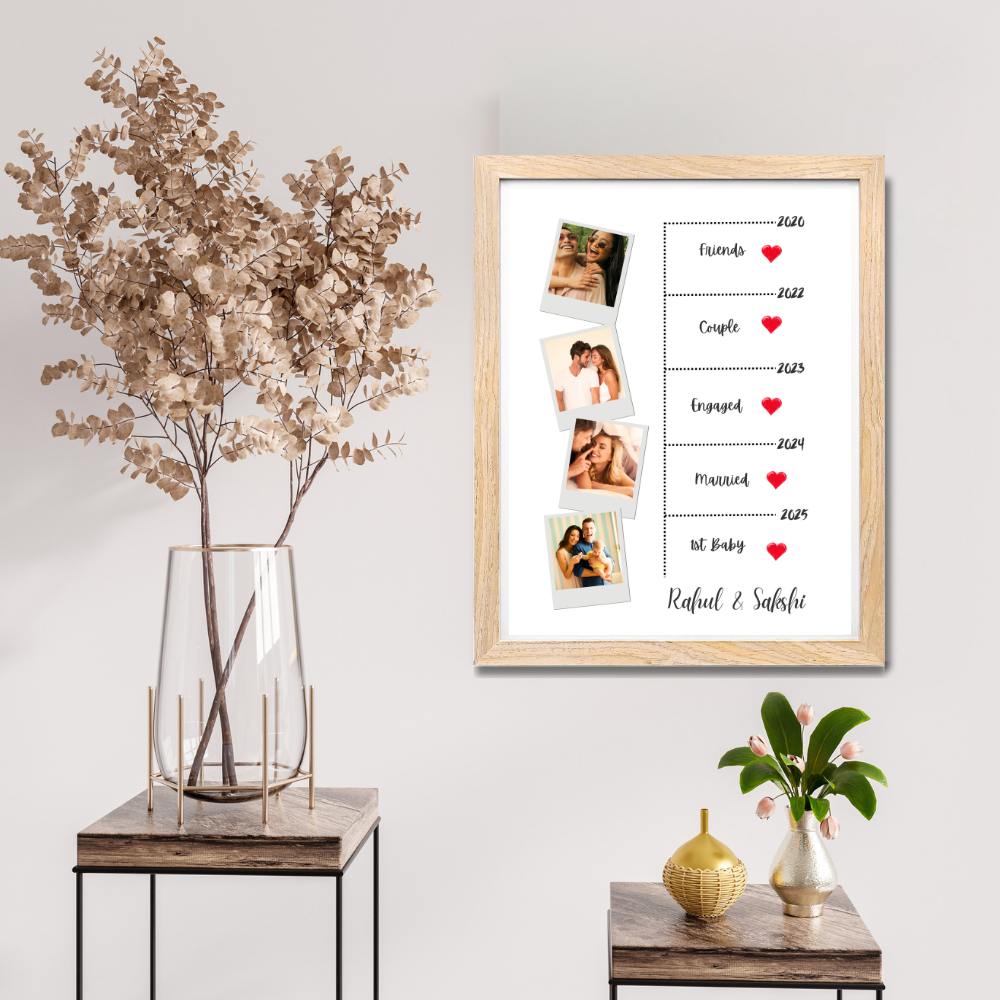 Custom Relationship Timeline Photo Frame – Wooden Frame Couple Milestone Gift Add Names, Years & Photos