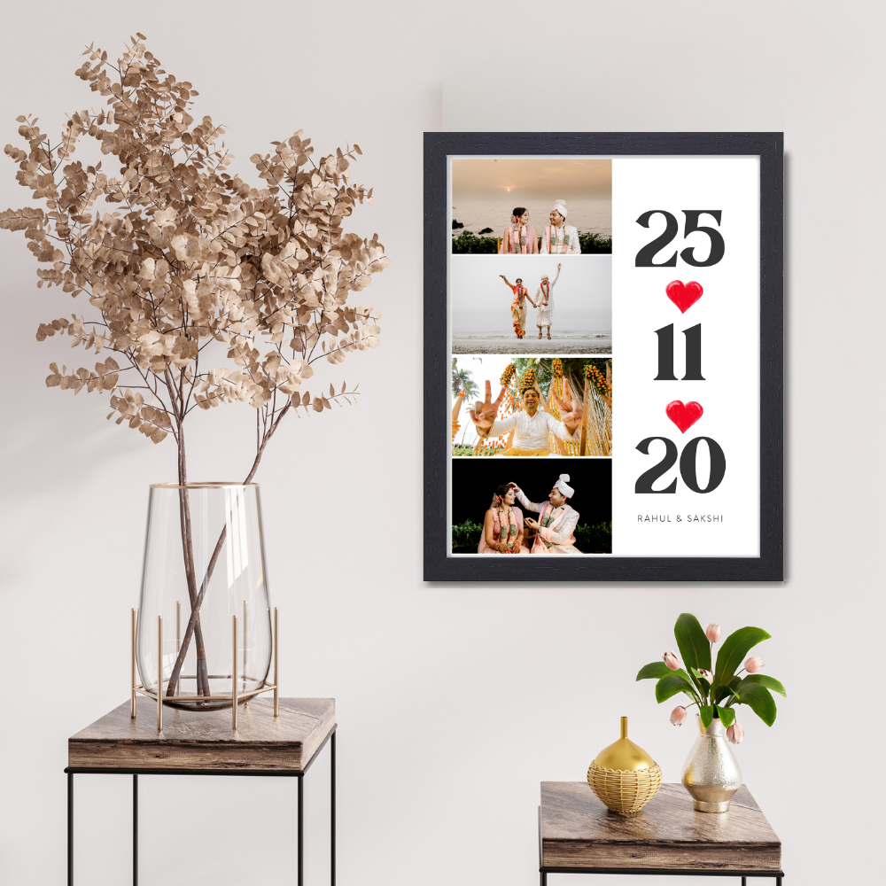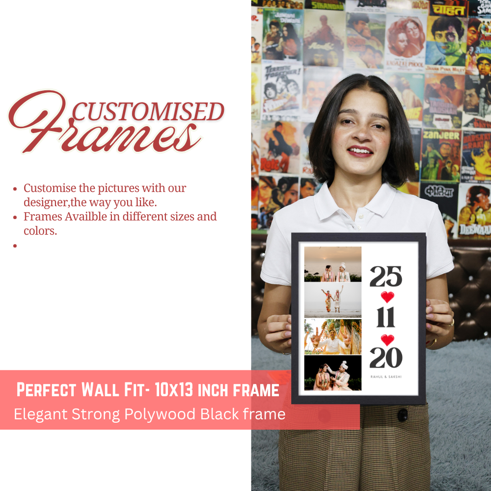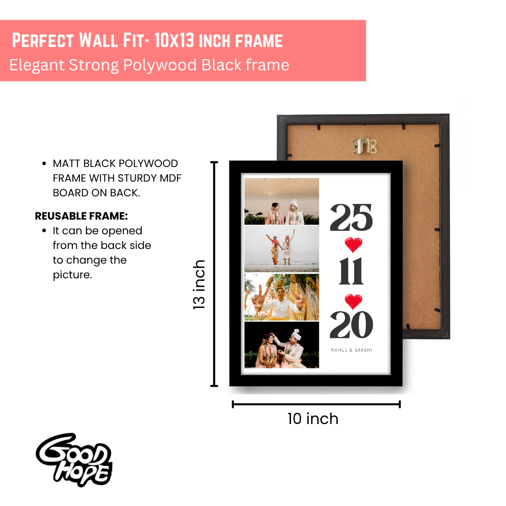 Custom Wedding Date Photo Frame | Personalized Couple Picture Frame with Name & 4 Photos