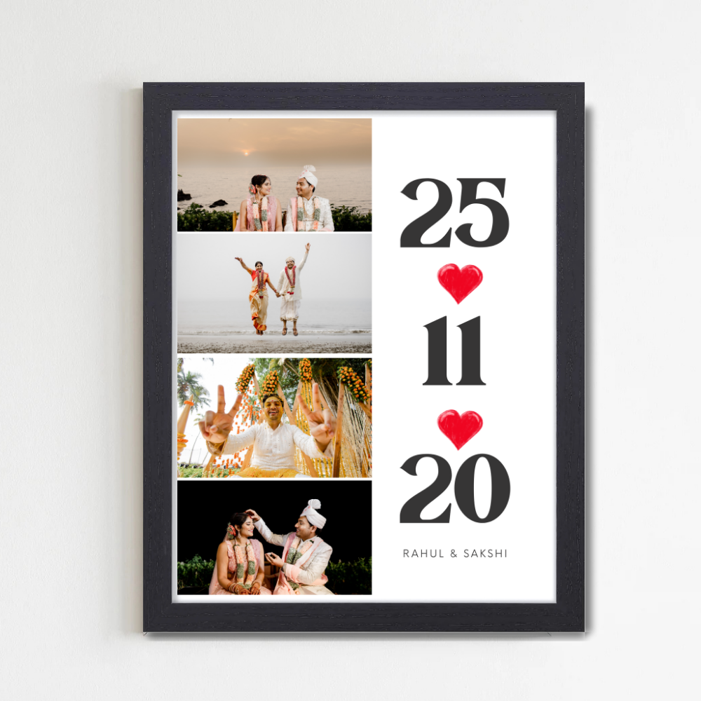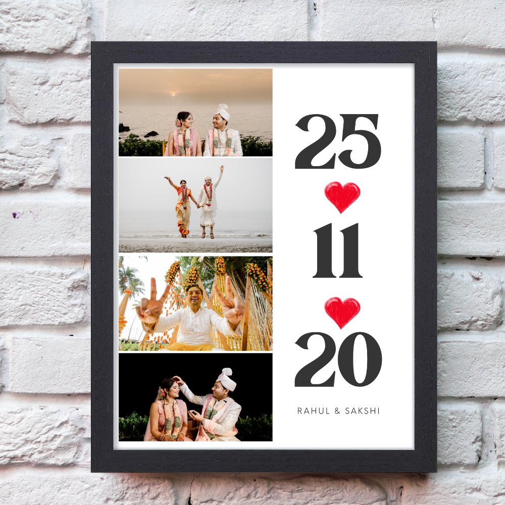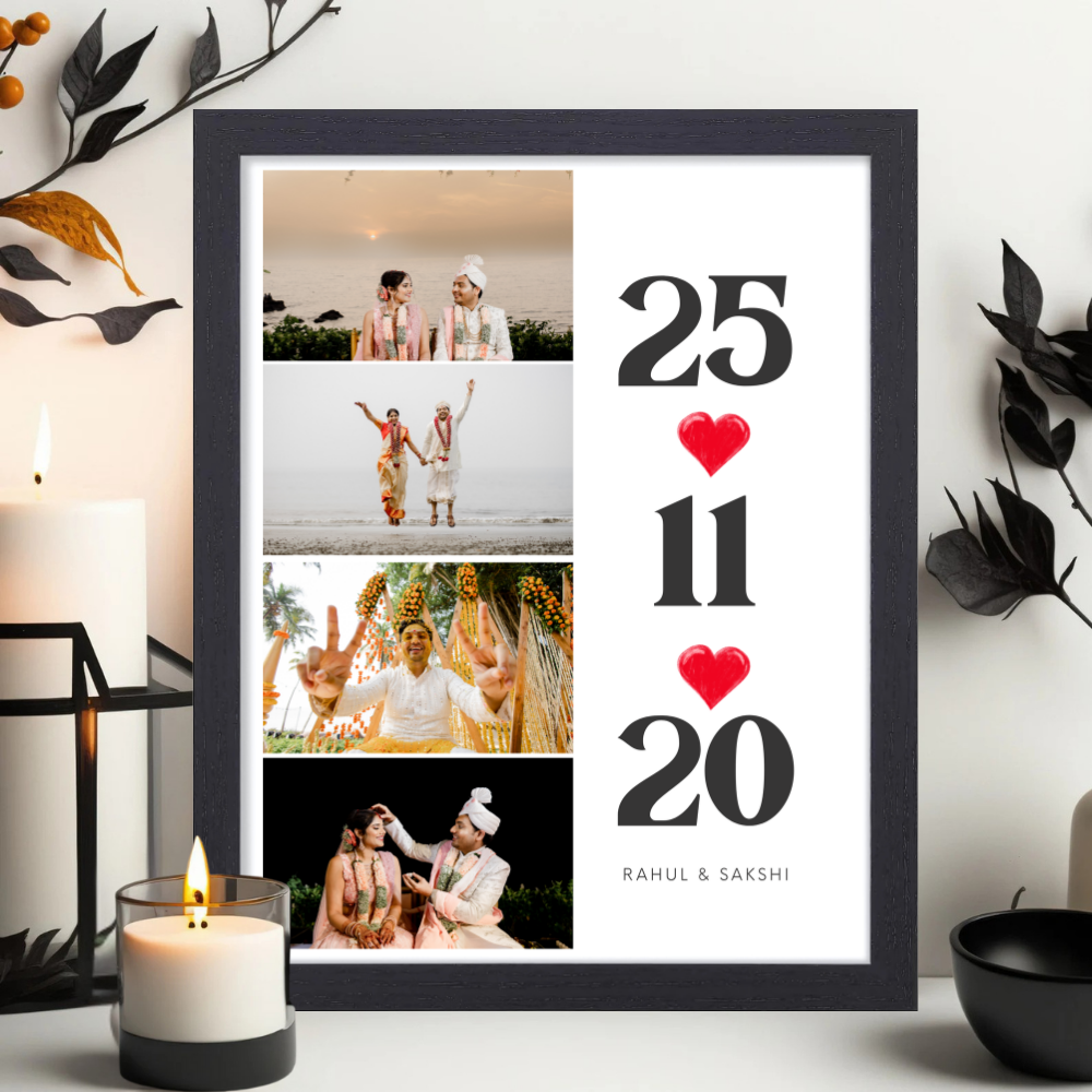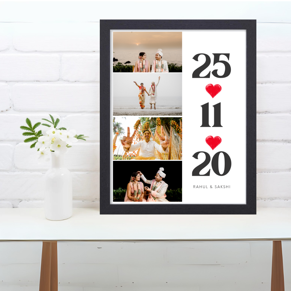 Custom Wedding Date Photo Frame | Personalized Couple Picture Frame with Name & 4 Photos