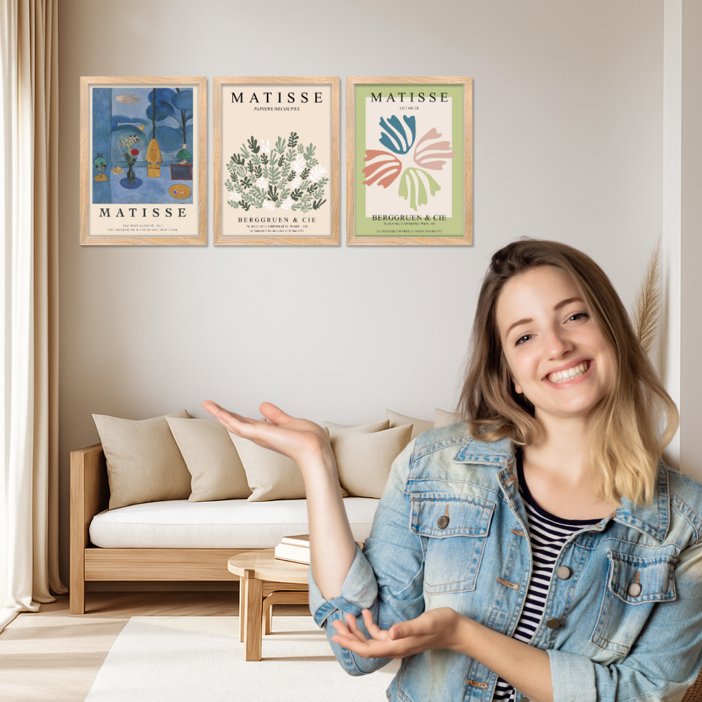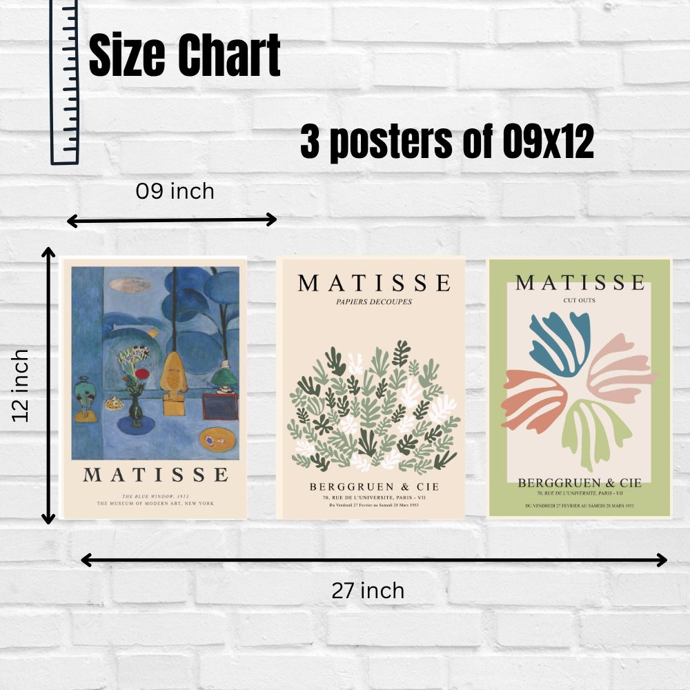 Set of 3 Henri Matisse Wall Art Paintings Framed Poster for Home Decoration, Living Room, Bedroom, Kitchen, and Office Wall Decoration (Copy)
