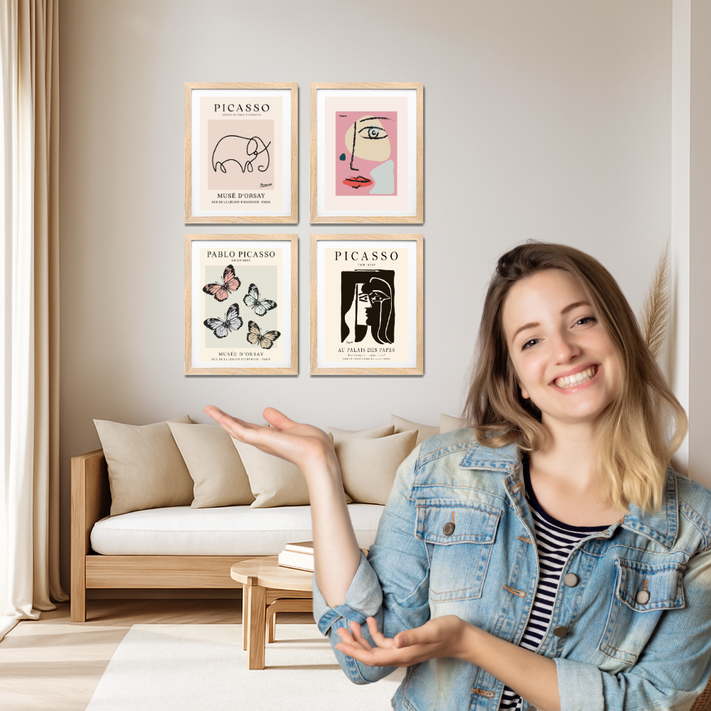 Set of 4 Picasso Wall Art Paintings Frame 10x13 Inch for Home Decoration, Living Room, Bedroom, Kitchen, and Office Wall Decoration Classic Aesthetic