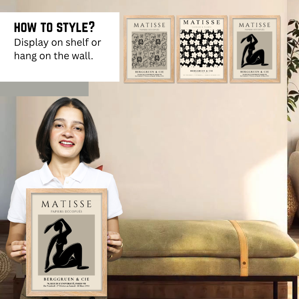 Set of 3 Henri Matisse Wall Art Paintings Framed Poster for Home Decoration, Living Room, Bedroom, hall, Kitchen, and Office Wall Decoration